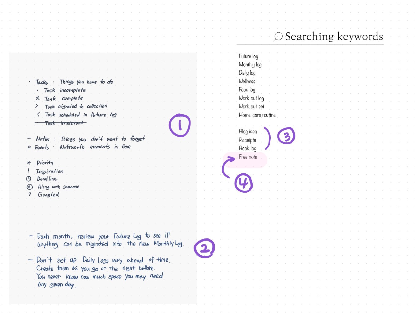 왼쪽의 공간은 여러분의 Bullet을 기록하거나, 자유롭게 사용하시면 됩니다.